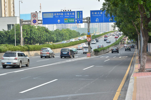 上圖為某快速路上一段由4車道變成3車道的瓶頸位置,現(xiàn)狀無信號燈控制,該位置這4條車道的車流同時放行,車流匯流沖突嚴(yán)重,特別是③、④號車道車流,同時放行造成路段車流秩序混亂,行程時間增加,通行效率大大降低。
