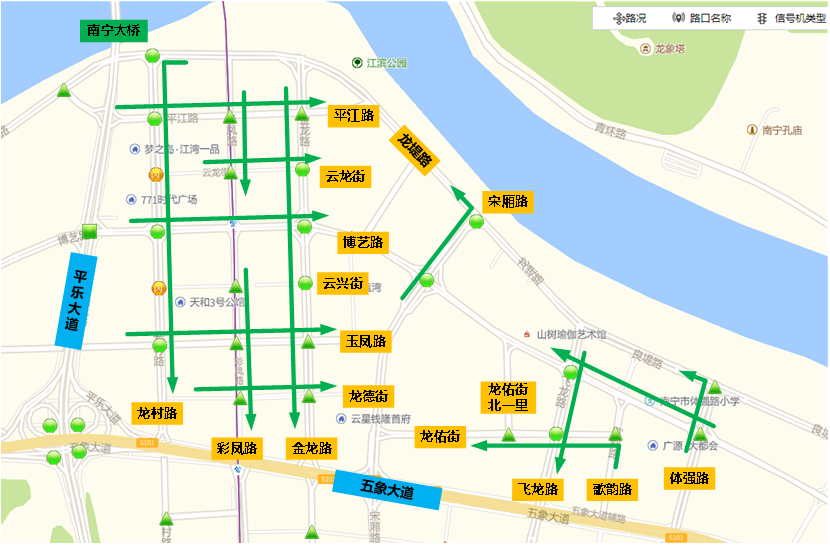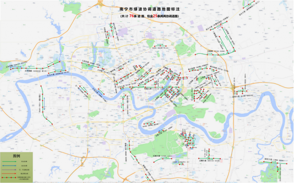 對江北大道和五一路等10條道路實施“綠波帶”道路優(yōu)化,道路通行時間平均縮短32.2%,行車速度平均提高31.6%。截至目前,南寧共設計實施了88條綠波協(xié)調道路,涉及291個路口,綠波協(xié)調控制里程突破145公里,并探索出五種協(xié)調控制模式,有效提高道路通行能力,極大方便了群眾出行。