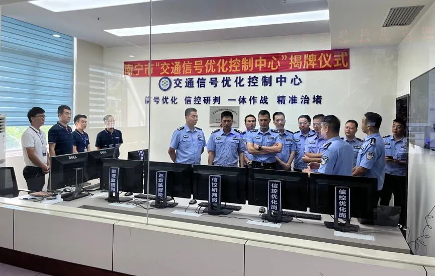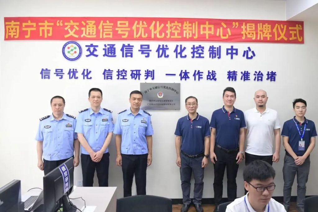 2022年6月22日,廣西首個交通信號優(yōu)化控制中心在南寧市公安局交通警察支隊正式揭牌。南寧市公安局交通警察支隊政委孫志宇、副支隊長羅建東、指揮中心主任陳茜、科研所所長李子龍、廣東振業(yè)優(yōu)控科技股份有限公司副總裁/研究院院長洪波、交通技術部副總監(jiān)陳宇等人參加了揭牌儀式。