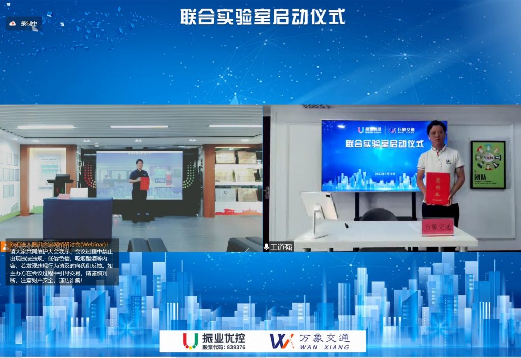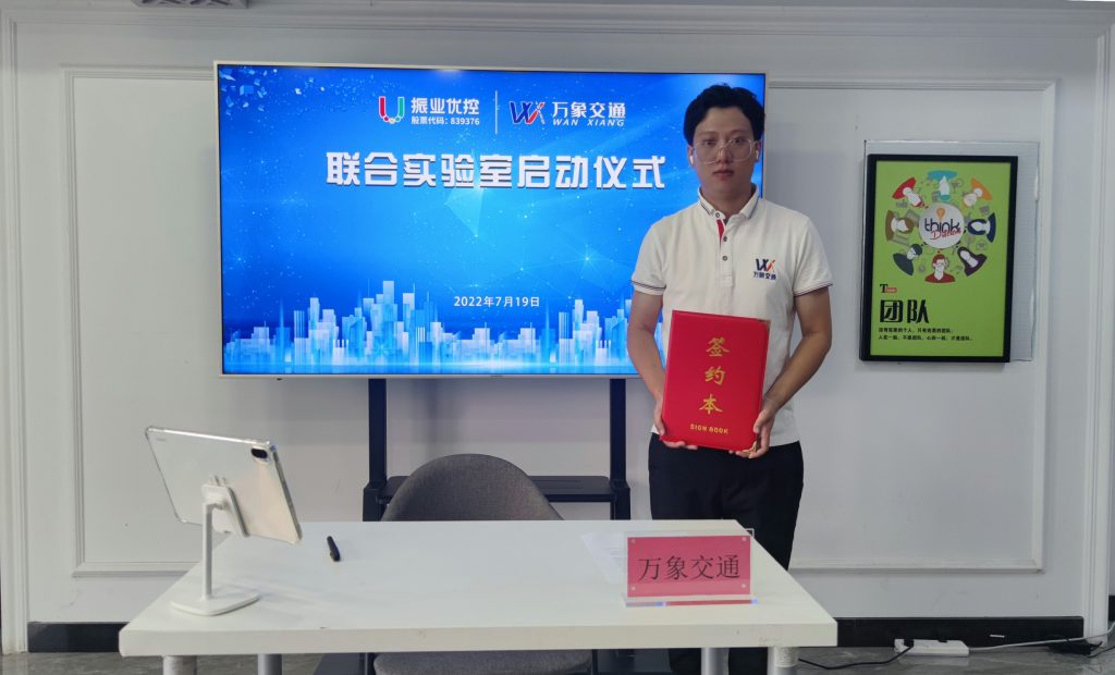 2022年7月19日,廣東振業(yè)優(yōu)控科技股份有限公司(簡稱“振業(yè)優(yōu)控”)與黑龍江萬象交通科技有限公司(簡稱“萬象交通”)舉行“振業(yè)優(yōu)控-萬象交通聯(lián)合實驗室”簽約儀式。振業(yè)優(yōu)控CEO陳寧寧博士、萬象交通技術(shù)總監(jiān)王道強參加此次儀式。