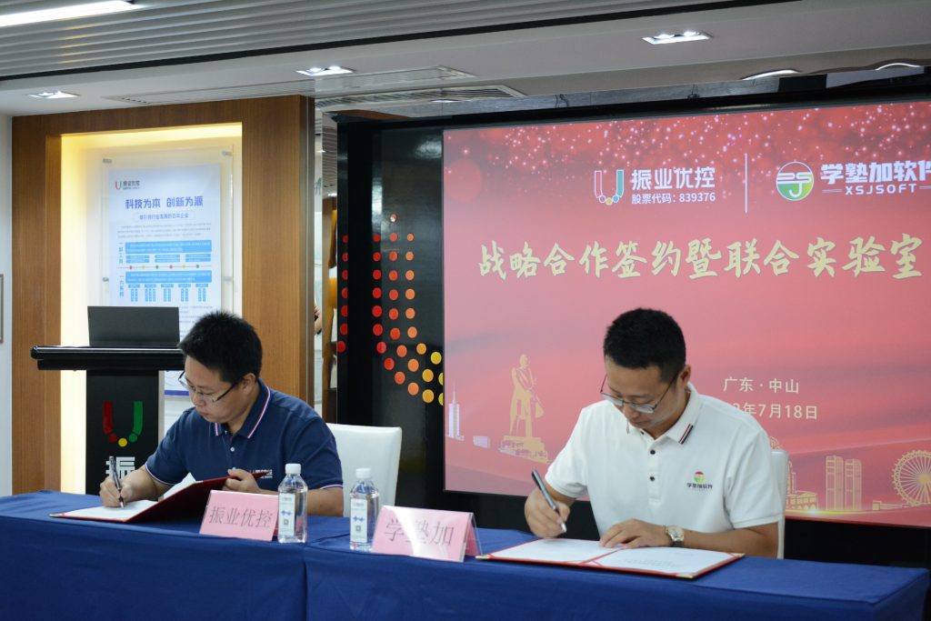 2022年7月18日,廣東振業(yè)優(yōu)控科技股份有限公司(以下簡稱“振業(yè)優(yōu)控”)與廣州學(xué)塾加軟件科技有限公司(以下簡稱“學(xué)塾加軟件”)戰(zhàn)略合作簽約暨聯(lián)合實驗室啟動儀式在廣東中山成功舉辦。振業(yè)優(yōu)控CEO陳寧寧博士、學(xué)塾加軟件總經(jīng)理沈文超博士、振業(yè)優(yōu)控市場推廣部總監(jiān)彭金偉、學(xué)塾加軟件市場總監(jiān)詹夢濤、技術(shù)總監(jiān)鄧瑞生等人參加此次活動。