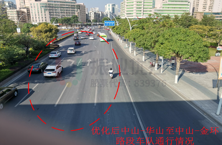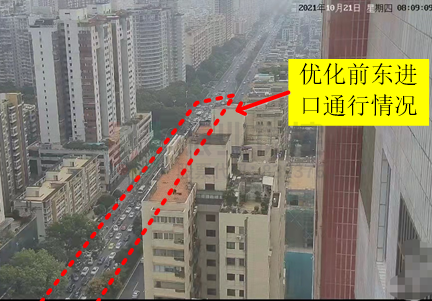 優(yōu)化后,早高峰期間金砂路各路口車輛均能正常運行,各方向車輛基本可以一至二次排空,全程無需人工干預,解放警力。其中,金砂-天山路口東進口車輛排隊長度也有明顯縮短,路口回溢現(xiàn)象消除,通行效率明顯提升。