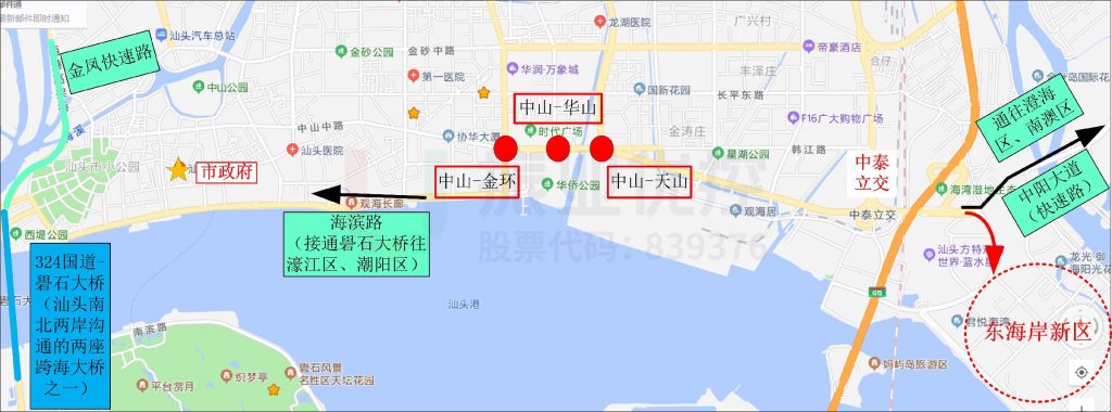 中山路貫穿龍湖區(qū)與金平區(qū),是汕頭市流量最大的東西走向主干道,周邊聚集辦公寫字樓、商圈集體、住宅區(qū),是城區(qū)市民出行的主要通勤道路。