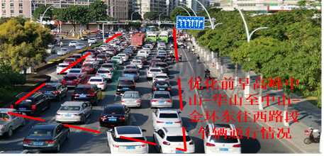 因龍湖區(qū)(位于汕頭東部)住宅區(qū)較多,金平區(qū)(位于汕頭西部)商業(yè)圈、機關單位、學校分布比較多,早高峰時段,中山路潮汐現(xiàn)象明顯,且路口間間距小,約500米左右,東往西方向經(jīng)常出現(xiàn)回溢現(xiàn)象。