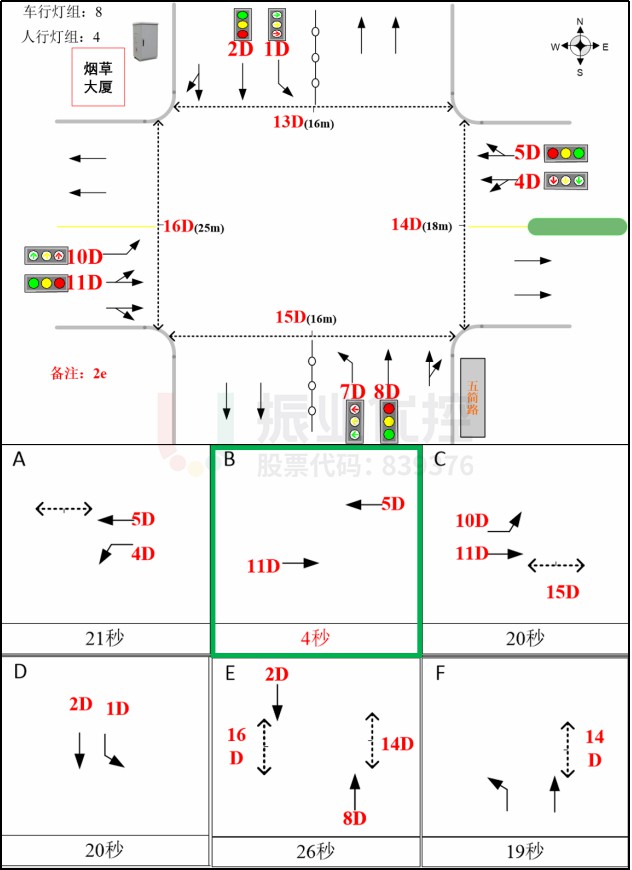 為搭接多相位協(xié)調(diào)進行調(diào)試,調(diào)試過程中發(fā)現(xiàn)煙草大廈路口東進口左轉(zhuǎn)機動車與南進口行人存在沖突;以及因為東進口左轉(zhuǎn)通過路口距離過長,導致東進口左轉(zhuǎn)尾車與行人產(chǎn)生沖突。