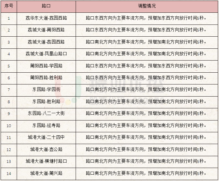 節(jié)前,考慮車流呈現(xiàn)遞增情況,信號優(yōu)化團隊對城區(qū)主干道荔城大道、東園路等14個路口,進行配時預(yù)調(diào)整,加大主要車流方向的放行時長,做好路口車流疏散工作,保障主要路段通行順暢。