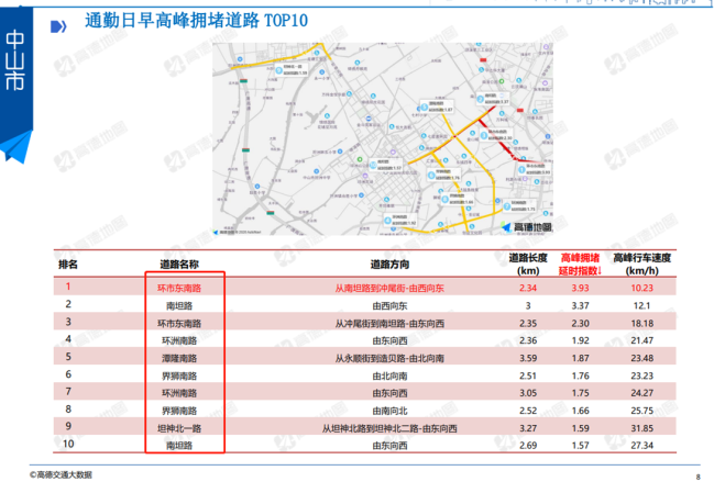 根據(jù)高德智慧平臺2020年發(fā)布的中山市第三季度交通分析報告,中山市早高峰擁堵道路前十名坦洲鎮(zhèn)區(qū)占據(jù)10條。交通信號配時中心成立后,2021年第三季度中山市早高峰擁堵道路前十名坦洲鎮(zhèn)區(qū)僅占2條。