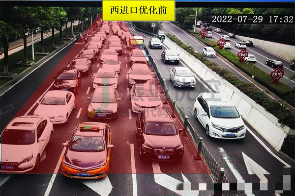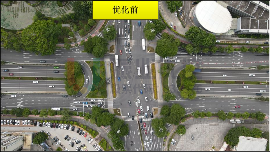 實(shí)施優(yōu)化方案后,該交叉口路況得到明顯改善,各方向的通行效率顯著提升;南向北長(zhǎng)排隊(duì)現(xiàn)象得到有效緩解。