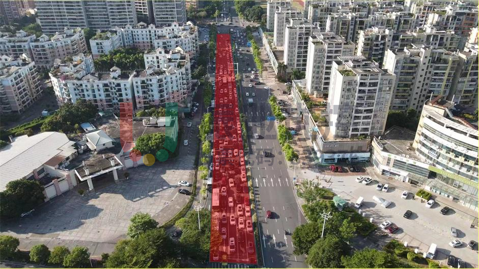 設(shè)置“全方向待行區(qū)”后,有效縮短了各方向車流排隊(duì)長(zhǎng)度,以南進(jìn)口為例,車輛排隊(duì)長(zhǎng)度由優(yōu)化前的300米左右縮短至160米左右(如圖所示);東、西進(jìn)口高峰期排隊(duì)也有明顯改善。具體如下圖所示: