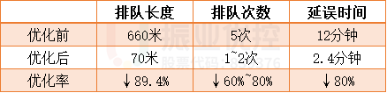 優(yōu)化后,消除了右轉(zhuǎn)車與非機(jī)動車的影響,主路通行更加順暢;車輛排隊(duì)等待次數(shù)和延誤時(shí)間明顯減少,優(yōu)化效果明顯。
