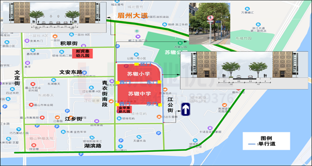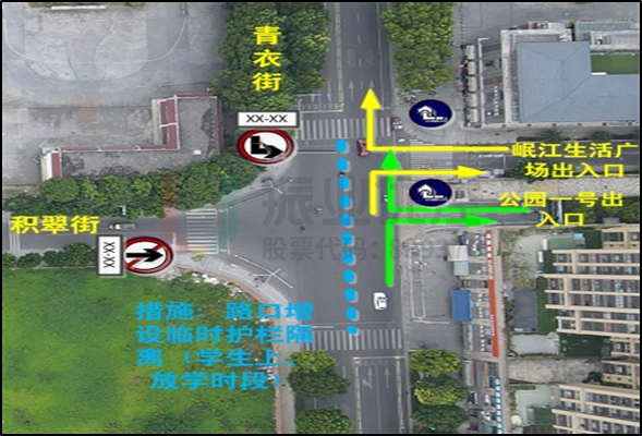 上下學(xué)時段,青衣街-積翠街中間沿青衣街中心線臨時增設(shè)錐形桶,進行硬隔離,并完善各進口禁行指示標(biāo)志;此外,限定岷江生活廣場、公園一號停車場出入口右進右出,同步規(guī)劃繞行路線,規(guī)范路口交通秩序,緩解人車沖突,保障行人安全。