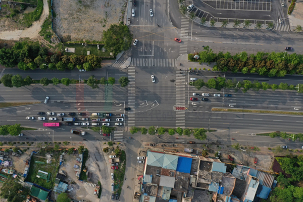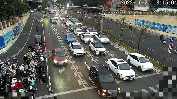 路口概況:南寧大橋作為南寧市最重要的跨江橋梁之一,日常承擔著大量的過境交通車流,高峰期車流量達6000pcu/h以上。平樂大道-博藝路路口是南寧大橋南端第一個信控路口,日常交通壓力大。