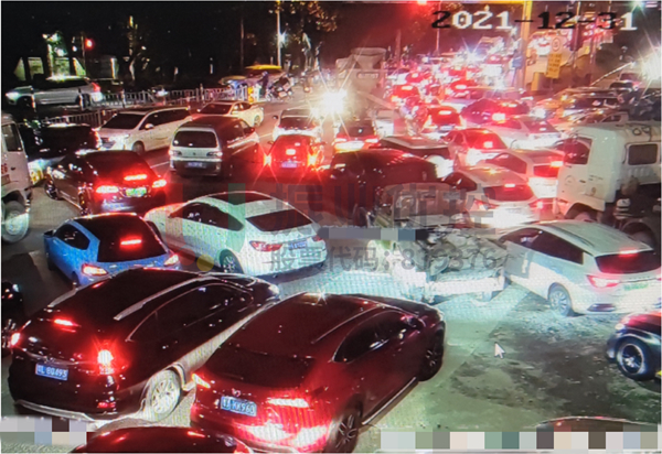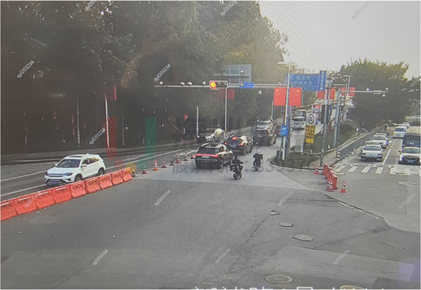 問題簡述:由于北出口施工,道路車行緩慢,導(dǎo)致出現(xiàn)車流溢出現(xiàn)象,車輛嚴(yán)重堵塞。此外,北進(jìn)口左轉(zhuǎn)至金城花園路口的車輛與行人存在沖突。