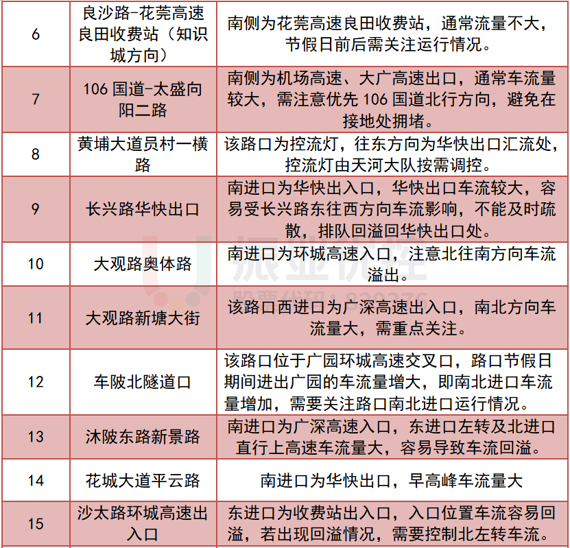 節(jié)末,市民返城需求大,高接地出入口、客運站、高鐵站、火車站、機場等交通樞紐站交通流劇增,需要重點關(guān)注干預(yù),并恢復(fù)工作日預(yù)案為復(fù)工復(fù)產(chǎn)做好充分準(zhǔn)備。對春節(jié)期間因車流量減少而取消早晚高峰優(yōu)先預(yù)案的路口方案進行調(diào)整,合計調(diào)整了23個路口,天河區(qū)9個、越秀區(qū)5個、白云區(qū)8個。