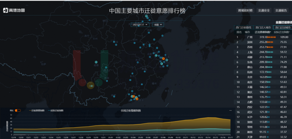 2023年春節(jié),隨著防疫新政落地,群眾返鄉(xiāng)過節(jié)、探親訪友、自駕旅游熱情高漲,路面人流量、車流量對比平日變化較大。據(jù)互聯(lián)網(wǎng)數(shù)據(jù)平臺,與2022年春節(jié)假期相比,今年廣州市民出行需求較大,其中,珠江新城等商圈周邊道路的擁堵指數(shù)較2022年更高。
