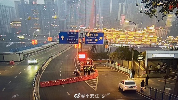 千廝門大橋位于江北城區(qū)域東南部,橫跨嘉陵江,連接渝中區(qū)解放碑,緊鄰洪崖洞,是游客打卡洪崖洞的最佳觀景地。春節(jié)期間,面對(duì)洪崖洞、千廝門大橋人車流驟增的情況,江北交巡警支隊(duì)根據(jù)交通安全管理需要,結(jié)合游客流量、交通運(yùn)行狀況及游客觀光賞景需求,于觀景高峰時(shí)段對(duì)千廝門大橋?qū)嵭薪煌ü苤?,禁止車輛途徑大橋駛往渝中區(qū),允許市民及游客步行上橋近距離觀賞洪崖洞。