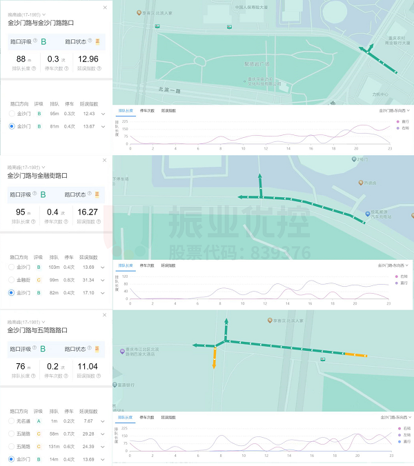 以金沙門路為例,由于該路段各路口間距較短且路口間缺少聯(lián)動(dòng)控制,東向西方向擁堵嚴(yán)重,尤其是金沙門路-精學(xué)街路口,原配時(shí)方案無(wú)法滿足車輛通行需求,大量繞行車輛堆積在路口。