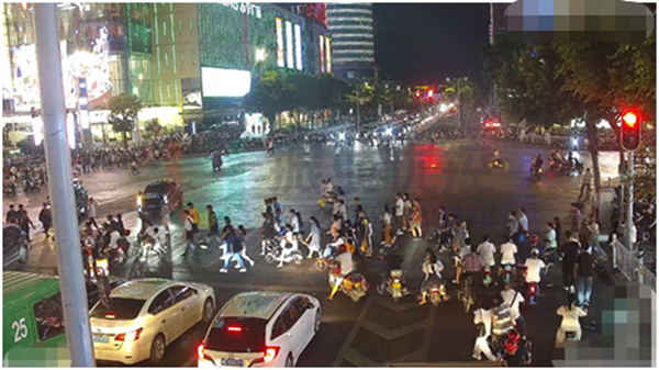 長平-金環(huán)路口位于汕頭市中心商業(yè)核心區(qū),毗鄰萬象城、蘇寧廣場、群光匯、366購物城等商業(yè)綜合體,周末及節(jié)假日晚間時(shí)段,路口車流量激增,機(jī)非沖突、車輛回溢、車輛排隊(duì)等待現(xiàn)象嚴(yán)重,交通秩序較為混亂。