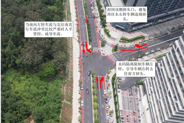 此外,交通工程師還根據(jù)路面警力反饋信息,對廣汕公路-荔新路、府佑路-荔景大道、荔新公路-荔鄉(xiāng)南路、荔鄉(xiāng)南路-金竹西路等重點(diǎn)路口實(shí)行交通管制、綠波放行等控制手段,以緩解擁堵,提升通行效率。