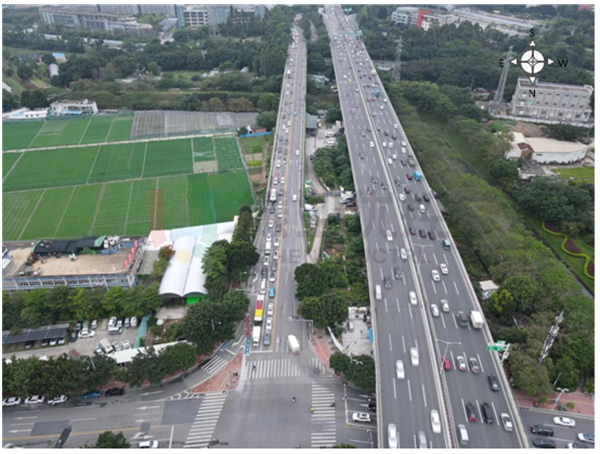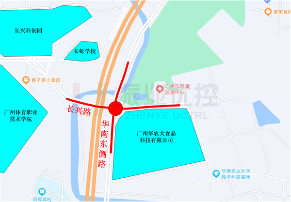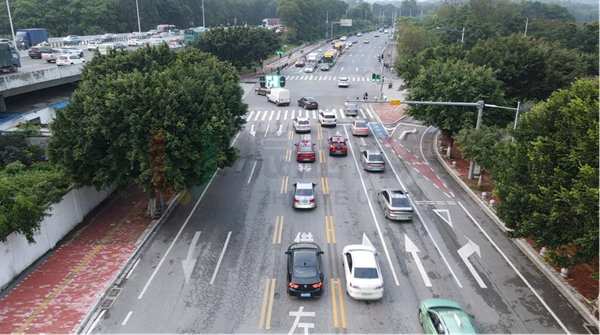 華南東側(cè)路-長(zhǎng)興路路口位于廣州市天河區(qū),附近學(xué)校、居民區(qū)眾多,日常南北行流量較大,尤其是早晚高峰,經(jīng)路口上下班人車流量較多。