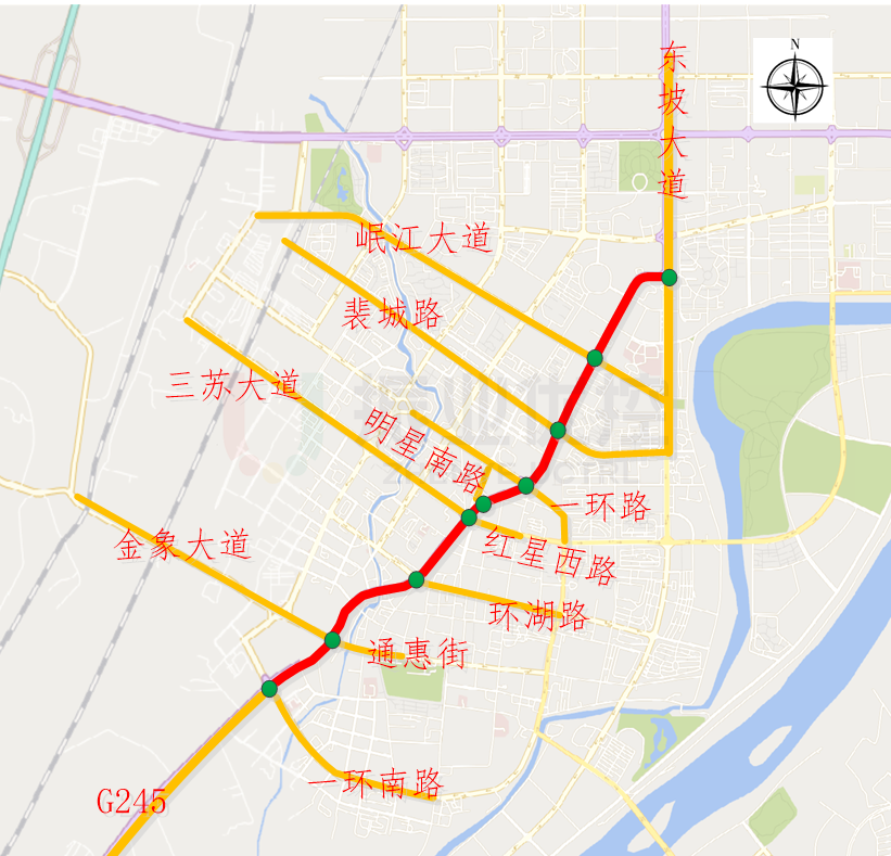 詩書路為南北走向,雙向4車道、沿線分布9個路口,北連東坡大道,南接G245國道,貫穿岷江大道、一環(huán)路、三蘇大道、紅星西路等橫向城市主干道,是眉山中心城區(qū)通往青神、樂山方向的主要通道之一。沿線有醫(yī)院、住宅區(qū)、商業(yè)區(qū)、旅游景區(qū)、學(xué)校等交通密集場所。