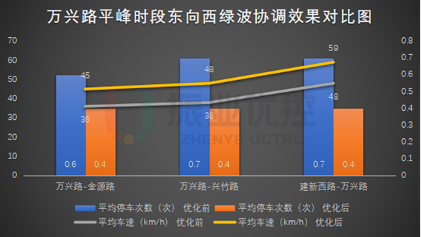 互聯(lián)網(wǎng)數(shù)據(jù)平臺顯示,路段綠波效果明顯,全路段雙向平均停車次數(shù)西往東從2次降低為1.4次,東往西從2次降低為1.2次;西往東平均速度從37.7km/h提升至44.0km/h,東往西從40.7km/h提升至50.7km/h,有效節(jié)省了市民的出行時間。