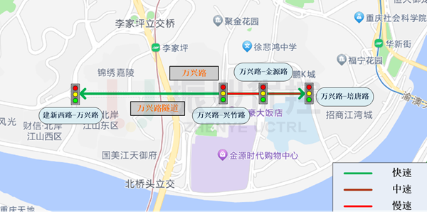 通過實地調(diào)研發(fā)現(xiàn),萬興路(建新西路-興竹路)大部分為隧道路段,通行環(huán)境良好、行車速度較快;萬興路(興竹路-金源路)路段通行環(huán)境較差且路段存在瓶頸,行車速度相對較慢。