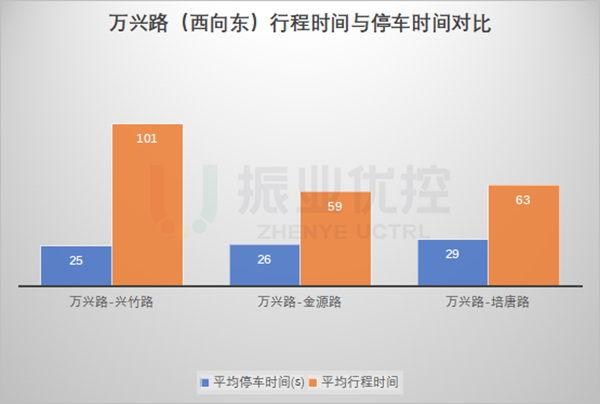 由于路段信號燈路口未進行協(xié)調(diào)控制,加上道路環(huán)境復(fù)雜,如萬興路-金源路路口西進口存在路段瓶頸(三車道變四車道)、行人橫穿馬路與非機動車隨意闖紅燈等現(xiàn)象頻發(fā),導(dǎo)致路段平均車速較慢。