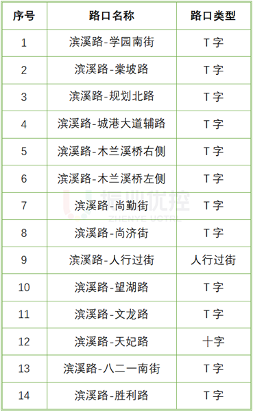 根據(jù)濱溪北路的路口分布特點(diǎn)與車流量情況,將其分為東西兩段,東段為木蘭溪橋下路口-天妃路橋下路口,涉及9個路口,尚濟(jì)街與濱溪北路路口為關(guān)鍵路口;西段為勝利路口至城港大橋下路口,涉及5個路口,濱溪北路-棠坡路路口為關(guān)鍵路口。