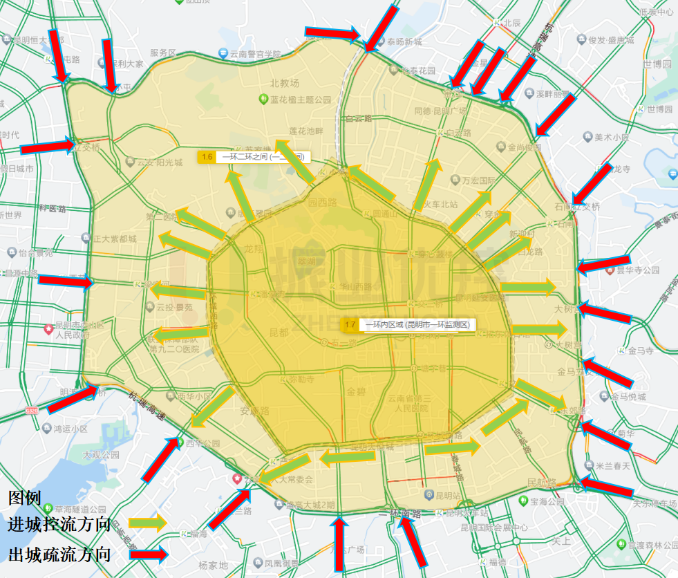 配時(shí)中心根據(jù)“昆明交管·智慧大腦”,預(yù)測交通流變化趨向。依據(jù)預(yù)測結(jié)果,對城區(qū)主干道交匯路口、高速出入信控路口、重點(diǎn)商圈與學(xué)校片區(qū)共計(jì)70余個(gè)路口設(shè)置節(jié)假日預(yù)案,縮短高峰擁堵持續(xù)時(shí)長,保障進(jìn)出城車流有序消散,緩解道路交通壓力。