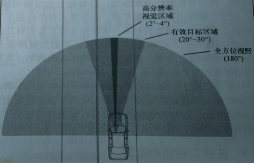 還有一個重要特點是有效視野。研究表明,大多數(shù)目標(biāo)是在距離視線不到15°的區(qū)域被發(fā)現(xiàn)的。任務(wù)要求越高,“視錐”或“有效視野”就越窄,駕駛?cè)税l(fā)現(xiàn)外圍目標(biāo)的可能性就越?。ㄈ鐖D2)。這也就是為什么在車速越高時視野越窄的原因。分心駕駛也與視覺處理能力有關(guān)。