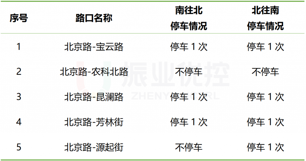 路段上5個路口間距較近,車輛單方向行駛停車3-4次,雙向停車達7次之多,通行體驗感較差。