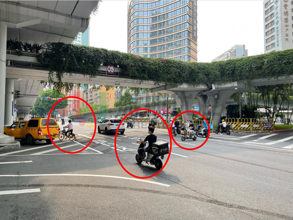 關(guān)鍵詞:慢行交通優(yōu)化、非機(jī)動車通道、行人過街、非機(jī)動車待行區(qū)
