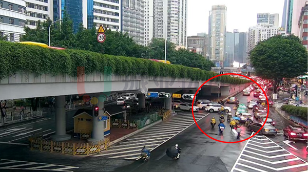 該路口周圍遍布住宅區(qū)、醫(yī)院、商圈,人流量、機(jī)動車及非機(jī)動車流量大。