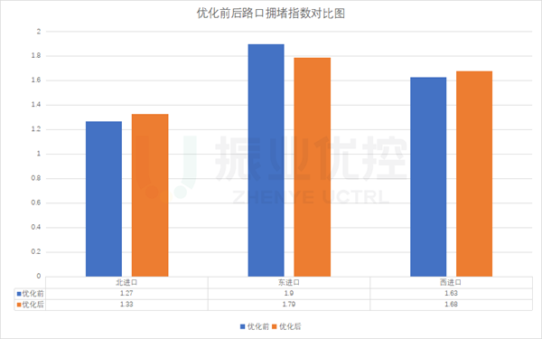 選取互聯(lián)網(wǎng)平臺數(shù)據(jù),對比優(yōu)化前后的平均數(shù)據(jù)發(fā)現(xiàn),各進(jìn)口擁堵指數(shù)無明顯變動。此次改造,在未加劇路口擁堵的情況下,有效規(guī)范了行人及非機(jī)動車的安全通行。