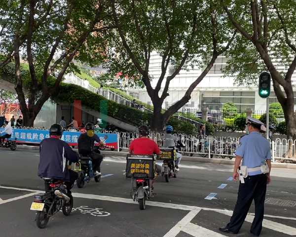 廣州交警圍繞“保障路口人車安全”的整體優(yōu)化目標(biāo),通過“完善慢行交通主體路權(quán)+控制右轉(zhuǎn)車”的方式,解決路口行人、非機(jī)動車、機(jī)動車沖突、秩序混亂的問題,規(guī)整路口秩序,減少人、非機(jī)動車對機(jī)動車的干擾。