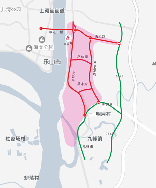 18:30至22:00,在碧山路-龍泓路、碧山路-樂山大佛文化廣場、山龍路-岷江一橋東端、G348線連接線路口分別設(shè)置管制點(diǎn)。20:30至21:30,在S104復(fù)線、明月路、九峰路分別設(shè)置管制點(diǎn)。
