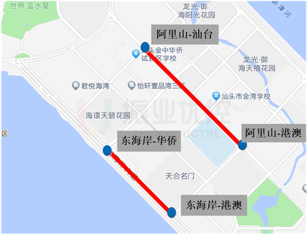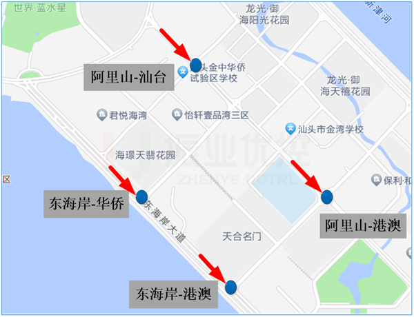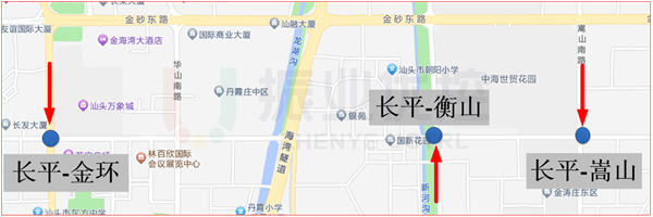 東海岸大道、阿里山路位于海岸新城區(qū),均為南北走向主干道,路段周邊分別有住宅小區(qū)與學(xué)校,是連接汕頭新老城區(qū)的重要路線。