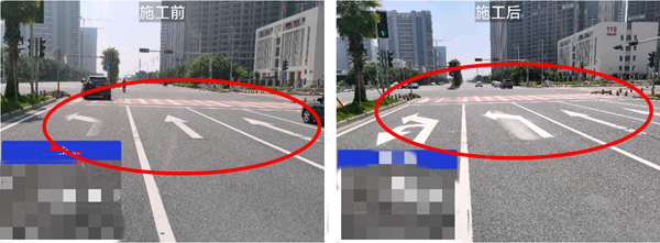改造后,各路口左轉(zhuǎn)或直行車輛的通行能力提升了48%-80%,個(gè)別路口直行、右轉(zhuǎn)通行能力有所下降,但均在可接受范圍內(nèi)。