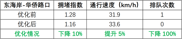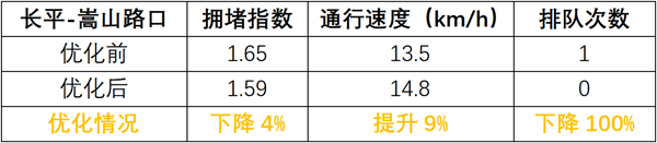 調(diào)整后,北進(jìn)口左轉(zhuǎn)通行能力提升80%,直行提升46%;路口整體通行效率提升39%。