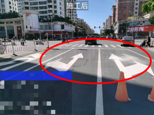 西進(jìn)口機(jī)動(dòng)車道設(shè)置由“1左+4直”調(diào)整為“1左轉(zhuǎn)掉頭混合+1左+3直”;放行方式適用,無調(diào)整。