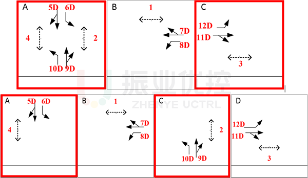 南進(jìn)口機(jī)動(dòng)車道設(shè)置由“1左轉(zhuǎn)+1直行+1直右混合”調(diào)整為“1左轉(zhuǎn)+1直左混合+1直右混合”;南北進(jìn)口放行方式由原來的“南北混放”調(diào)整成南、北進(jìn)口“單邊放行”。
