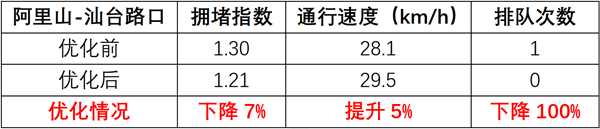調(diào)整后,北進(jìn)口左轉(zhuǎn)通行能力提升54% ,直行下降6.7%;路口整體通行效率提升23.6%。