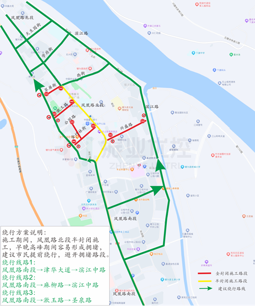 繞行線路2:鳳凰路南段→麻柳路→濱江中路
