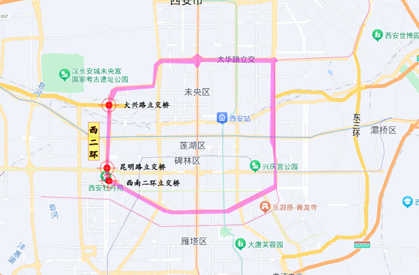 概況:西二環(huán)是西安城市快速路骨架路網(wǎng)的重要組成部分,南接南二環(huán)西段、北至大興立交,高架段保持雙向4車道通行,地面段保持雙向6-8車道,承擔(dān)著西安城西片區(qū)過(guò)境和對(duì)外交通流轉(zhuǎn)換樞紐功能。