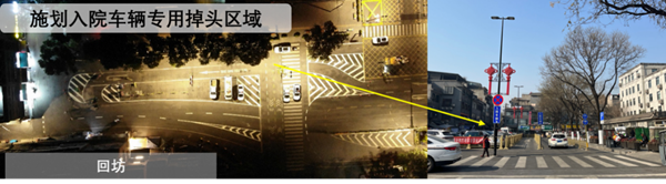 優(yōu)化措施:通過(guò)增設(shè)多組交通標(biāo)志、施劃地面文字標(biāo)識(shí)分離就醫(yī)入院車流、送客臨停車流、應(yīng)急通行車流與其他車流,將原有路內(nèi)停車位調(diào)整為應(yīng)急處置區(qū)域,旅游高峰期作為公安值守點(diǎn)。