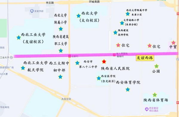 概況:友誼西路是西安市碑林區(qū)重要通勤道路之一,為三塊板道路,全線分布有西安市第八十二中學(xué)、西北工業(yè)大學(xué)附屬中學(xué)、西北工業(yè)大學(xué)、陜西省人民醫(yī)院等多所“醫(yī)?!?,早晚高峰公眾出行密集。