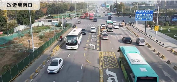 實(shí)施亮點(diǎn):車道級(jí)誘導(dǎo)各類交通流各行其道,改善整體通行秩序。